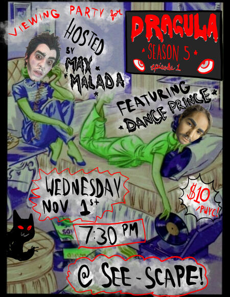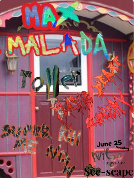 Max Malada is a Toronto-raised music and drag performer who was born from a need to translate artistic talent into living, breathing movement. He is influenced by the most shocking goth rockers, and inspired by the suavest of silver screen stars. His multimedia artistic practice is informed by the Pochinko method of Canadian clowning as taught by John Turner.Contact today for a performance booking of music or drag, a crystal ball reading, or an appearance in your nightmares...