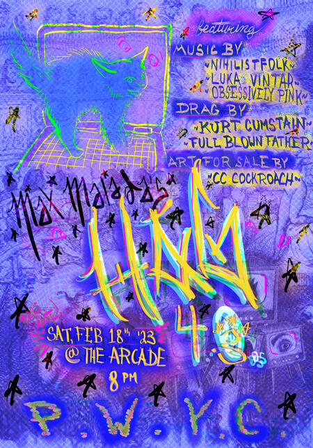 Max Malada is a Toronto-raised music and drag performer who was born from a need to translate artistic talent into living, breathing movement. He is influenced by the most shocking goth rockers, and inspired by the suavest of silver screen stars. His multimedia artistic practice is informed by the Pochinko method of Canadian clowning as taught by John Turner.Contact today for a performance booking of music or drag, a crystal ball reading, or an appearance in your nightmares...